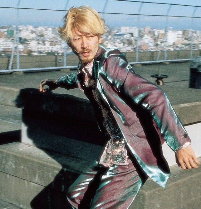 有趣的是,淺野忠信在讓他揚名國際的邪典電影《殺手阿一》裡,壓根演的不是殺手阿一(Ichi)。這多少反映了淺野在大量類型電影裡演繹的變態、狂放、詭異形象,與他本人個性其實有很大落差的事實。